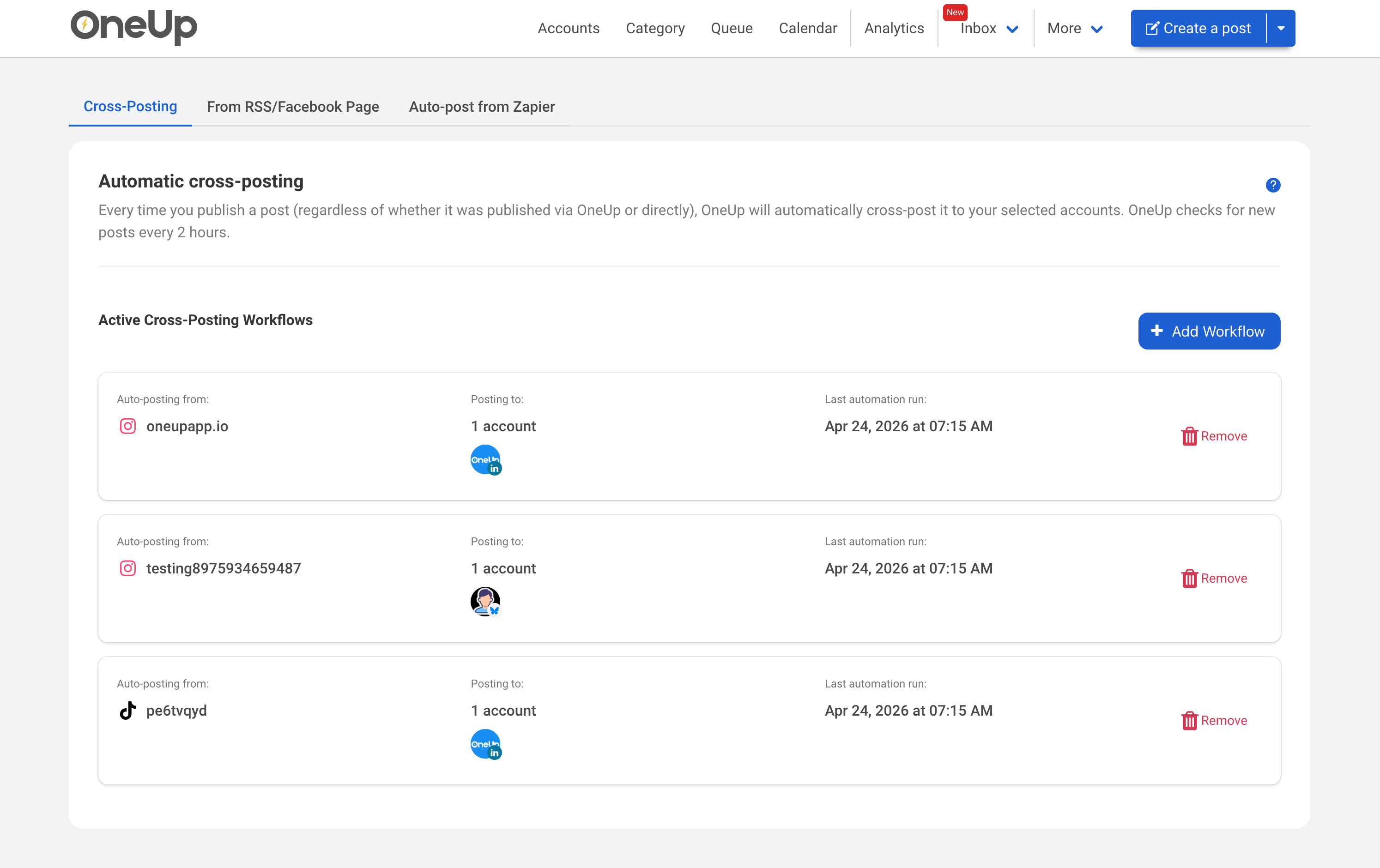 on Account A, also post it on Account B). Or you can auto-post from RSS feeds.